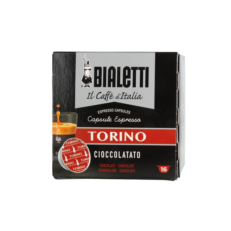 Real Italian coffee in capsules. Bialetti Torino is Italian dark roast coffee, with the highlighted chocolate flavour and velvety body. Medium roast, compatible with Bialetti system capsule coffee machines.
