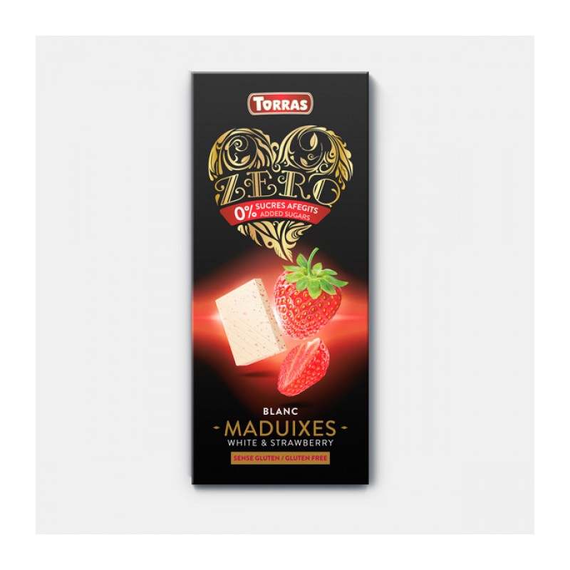 White chocolate with strawberries and sweetener. For those who love sweets, but also, want to to be healthy and fit. It has fewer calories and carbohydrates than regular chocolate.