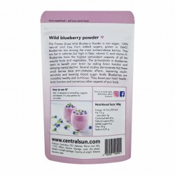 Centralsun Freeze-Dried Wild Blueberry powder is 100% pure and vegan. Free of added sugars, gluten, GMOs.
