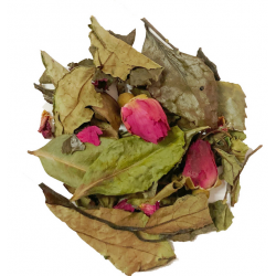 An exceptionally exquisite combination of white Pai Mu Tan tea and Macedonian rose petals. The natural floral note that characterizes this tea perfectly harmonizes with the aroma of the rose. In addition, both components of the mixture are distinguished by a number of health-promoting properties. The tart rose contains a wealth of vitamin C, and White Pan Mu Tan is a rich source of magnesium, polyphenols, catechins and tannins. We recommend this unique composition to connoisseurs.