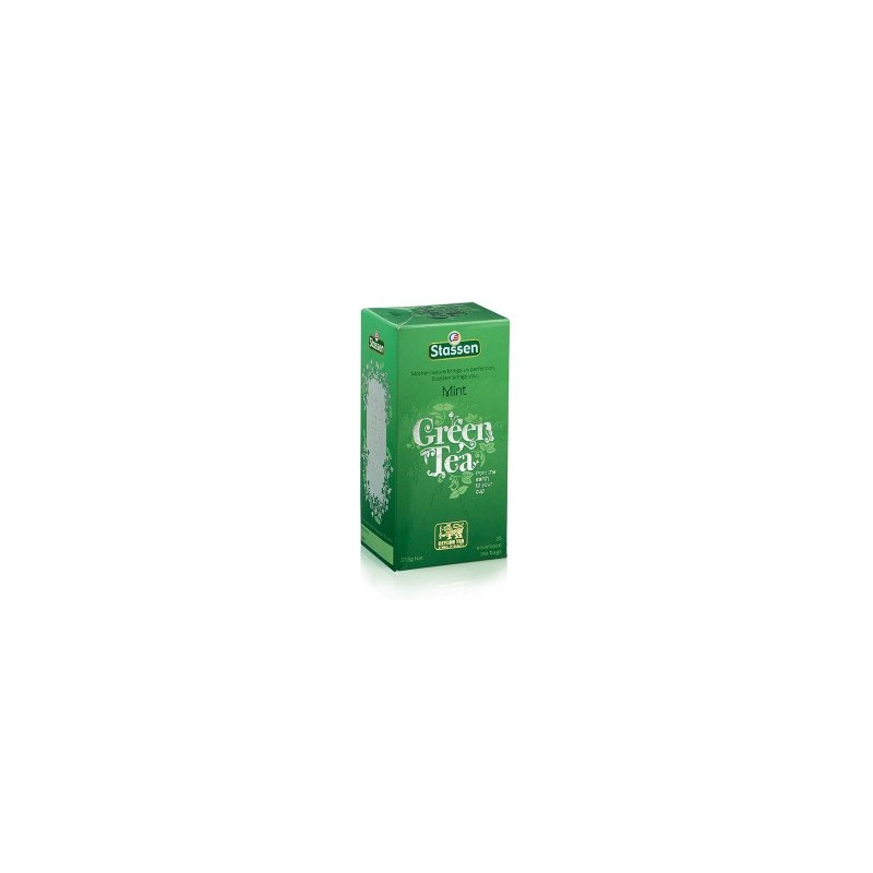 Stassen green tea with mint, 25 packets, 37.5g. Ingredients: Ceylon green tea, mint flavoring. Preparation: pour 1 tea bag with 150 ml of water at 75-80 ° C, leave to infuse for 1-2 minutes. Made and packed in Ceylon, Sri Lanka.