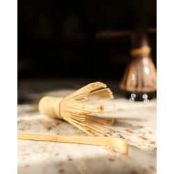 Traditional bamboo whisk or “chasen” is an indispensable tool of the Japanese matcha tea ceremony. The fine, handmade prongs are carved out in a single piece of bamboo. When using a chasen to whisk matcha it is best to keep a loose and relaxed wrist and make rapid zigzag motions in the shape of letter “W” or “M” – this helps to give matcha the ideal frothy texture.