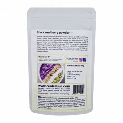 Black mulberry powder is a true source of nutrients, rich in vitamins and minerals. It is especially rich in vitamins C and K, which contribute to the strengthening of the immune system and bone health. In addition, the powder contains iron, calcium and potassium, which are important for the normal functioning of the heart and muscles. The fiber content supports digestive health and helps maintain regular digestion.