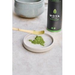 Moya Matcha Traditional is grown in the Uji and Kagoshima regions, known for the cultivation of highest quality green tea for over 800 years. The regions are famous for its fertile soils and clean water. The green tea plants there have ideal conditions for growth thanks to hills providing good sunlight, frequent mists that protect delicate leaves from frost and high amount of rainfall. Moya Matcha is meticulously cultivated and harvested on small family-owned organic tea fields. It is then processed locally in Japan and dispatched in small batches to assure peak freshness for all our grades. This helps preserve all the qualities of the tea leaf and maintain high levels of minerals and antioxidants.