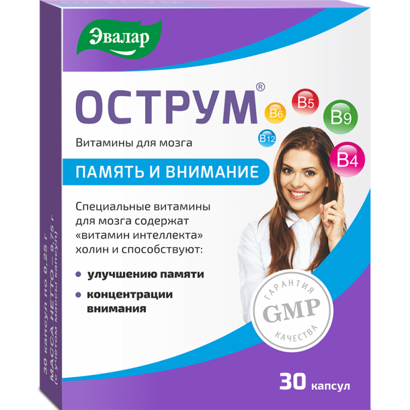 Have you forgotten about important matters and memorable dates again? Has your attention become somewhat scattered? Does it take too much time to solve simple problems? How can you help yourself in this situation? To improve your memory, attention, and mental performance, you need special vitamins for the brain. Evalar offers a special complex of vitamins for the brain — Ostrum.