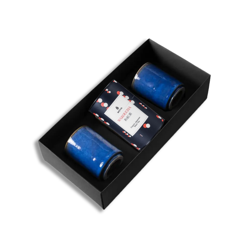 Wakoucha Moya black leaf tea with handmade ceramic mugs - tea gift set