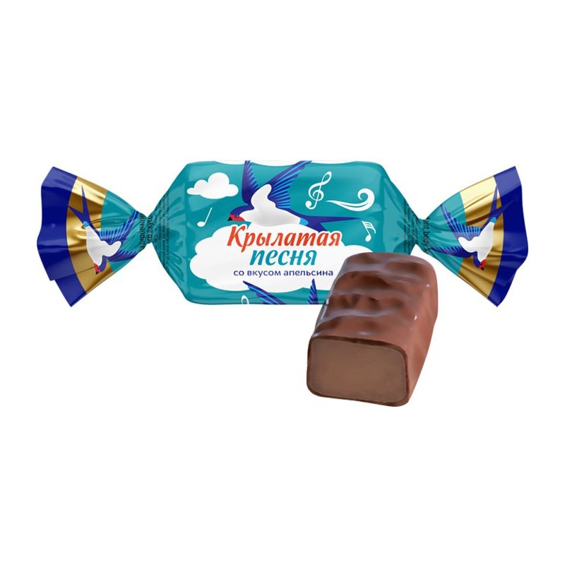 Glazed candies "Krylataya Pesnya" with a fondant body and a bright chocolate flavor. Delicate fondant candy covered with aromatic chocolate glaze.