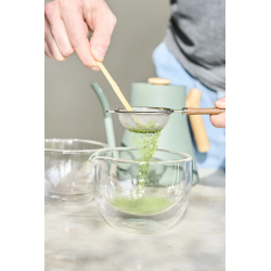 A metal matcha strainer with a small mesh and a diameter of 7 cm to get rid of lumps while preparing your matcha. The wooden handle gives it a bit of a traditional shine. Remember to rinse the strainer with lukewarm water after use and dry it thoroughly.