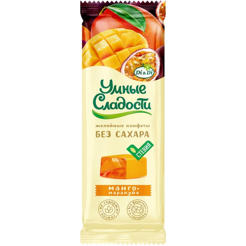 Ingredients: molasses, drinking water, sweetener - maltitol, gelling agent - pectin, humectant - sodium lactate, acidity regulator - citric acid, preservative - potassium sorbate, flavors - mango, passion fruit, color - beta-carotene, sweetener - stevioside (steviol glycosides). May contain traces of dairy and egg products, nut kernels and peanuts.