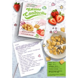 Sastāvdaļas: Zemeņu pildījums (augu tauki, izomalta saldinātājs, piena sūkalas, maltodekstrīns, piena pulveris, karobu pulveris, žāvētu zemeņu pulveris, stevija saldinātājs-ekstrakts (steviosīds), emulsijas-sojas lecitīns, vanilīns, zemeņu aromatizētājs, kas ir identisks dabīgajam, dabīga krāsviiela "karmīns" ), amaranta milti, pilngraudu, pilngraudu rīsu milti, pilngraudu kukurūzas milti, žāvēts topinambūrs, sāls, vitamīnu maisījums.