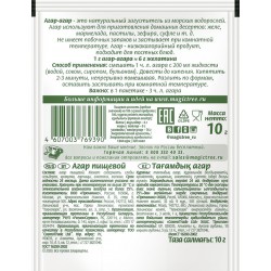 Dabīgs jūras aļģu biezinātājs. Agaru izmanto mājās gatavotu desertu pagatavošanai: želeja, marmelāde, zefīrs, zefīrs, suflē utt. Nav blakus smaku un sacietē istabas temperatūrā. Zems kaloriju produkts, piemērots liesām maltītēm.