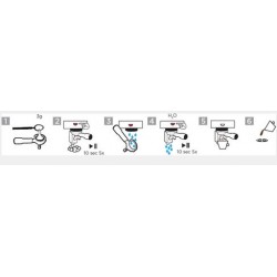 4. Ievietojiet portafiltru bez tīrīšanas pulvera. Aktivizējiet pagatavošanas ciklu 10 sekundes. Pārtrauciet 10 sekundes. Atkārtojiet 5 reizes.