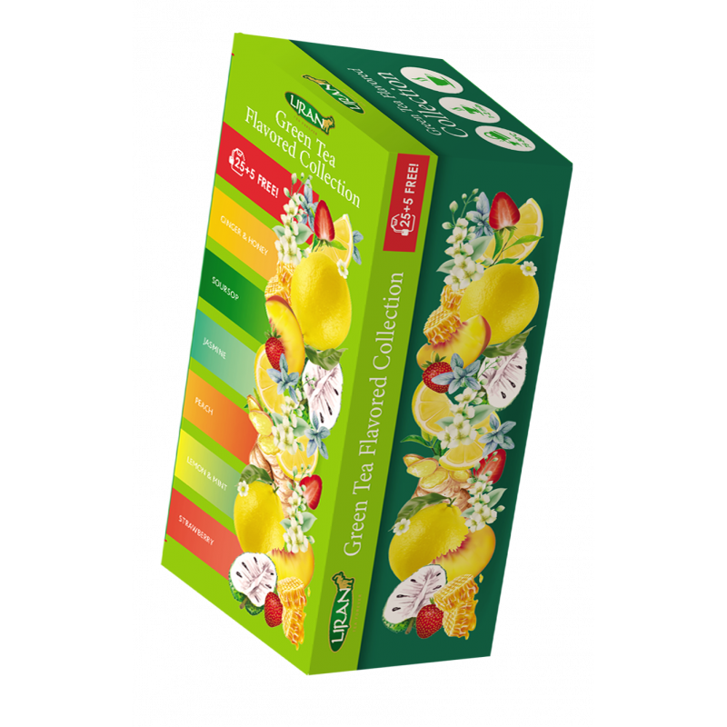 Zaļā tēja, dažādi veidi, kas aromatizēta ar jasmīnu, soursop, persiku, citronu ar piparmētru, zemenēm, ingveru un medu.