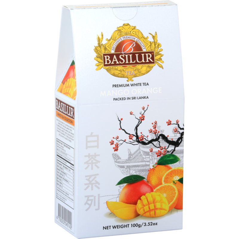 Baltā tēja, kas pagatavota no vissmalkākajām lapām ar mango, apelsīnu ziedu, rudzupuķu ziedlapiņu pieskaņu un dabīgu mango un apelsīna aromātu.