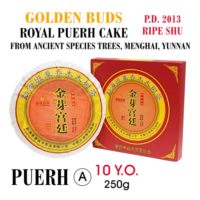 Izteikta lielo lapu Pueras tēja papildināta ar daudz zeltainas nokrāsas tipšiem, kas dod tējai samtainu, dziļu garšu ar koksnes notīm piedevā, orhideju un melno plūmju niansēm, saldu pēcgaršu. Tējai piemīt izteikts seno tējas koku un melno plūmju aromāts.