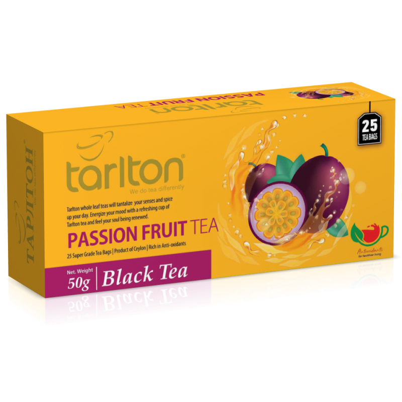 Melnā tēja ar ļoti patīkamu tropisko augļu marakujas garšu.