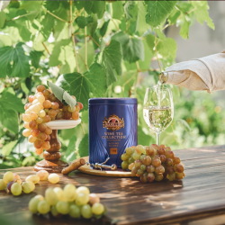 Ceilonas melnās tējas, rozīņu, čerimojas un balto vīnogu vīna garša: augļu,