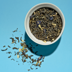 Sastāvdaļas:Zaļās tējas lapa (Camellia sinensis (L.) Kuntze)* 72,5%, clitoria ternatea L. zieds, piparmētras lapa, jasmīna ziedu ziedlapiņas 1%, saldā bazilika lapa 3%.