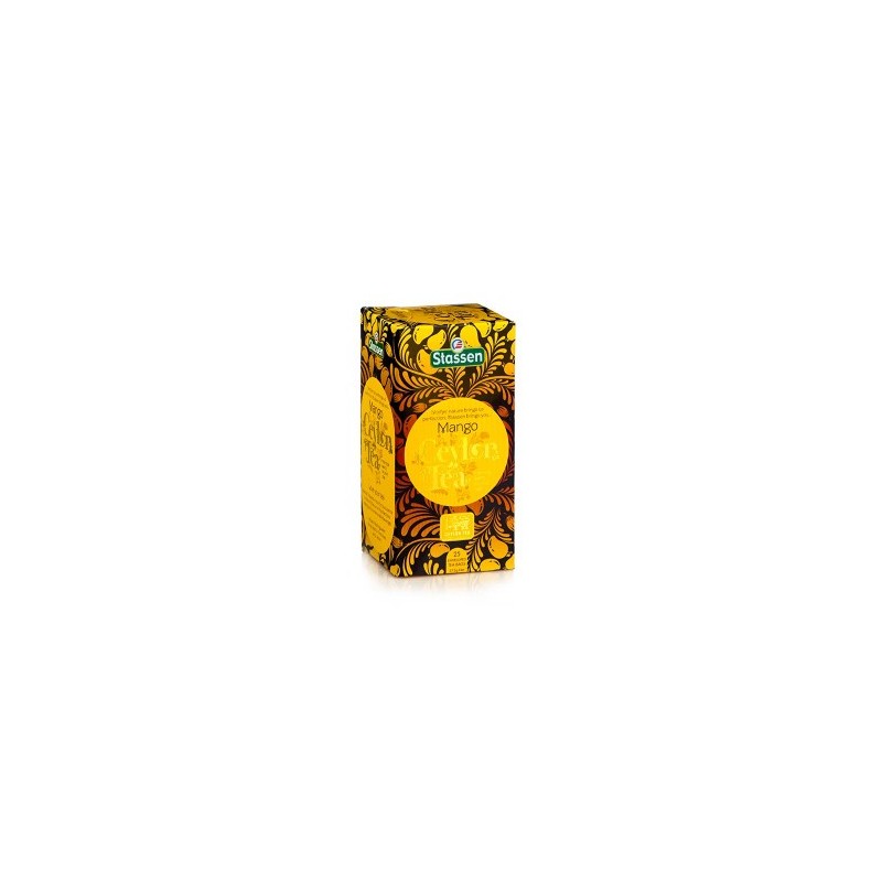 Stassen melnā tēja ar mango aromātu, 25 paciņas, 37.5g. Sastāvdaļas: Ceilonas melnā tēja, mango aromatizētājs. Pagatavošana: 1 tējas maisiņu apliet ar 150 ml ūdens 99 ° C t, ļauj ievilkties 2–3 minūtes. Ražots un iepakots Ceilonā, Šrilankā.