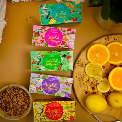 Sastāvdaļas: ingvers, kanēlis, granātābols, apelsīna miza, krustnagliņas, kardamons, lakricas sakne, citrona miza, kurkuma un tulsi.