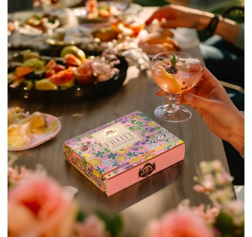 Augļu tēju izlase maisiņos dāvanu iepakojumā: granatābols un avenes / godži un laims / mango un persiki / augļu limonāde / marakuja un apelsīns / noni un plūmes.