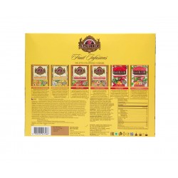 Augļu tēju izlase maisiņos dāvanu iepakojumā: godži un laims / mango un persiki / augļu limonāde / dzērvenes / avenes / marakuja un apelsīns.