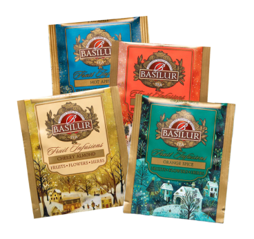 Ekskluzīvs bezkofeīna augļu tēju komplekts no Fruit Infusions kolekcijas svētku noskaņā. Šajā dekorētajā tējas kannā ir 4 garšas:
