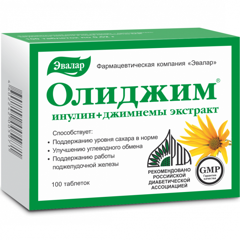 Olidžim pamatā ir inulīns un vingrošanas ekstrakts, kas, iedarbojoties tandēmā, normalizē ogļhidrātu vielmaiņu un palīdz droši regulēt glikozes līmeni asinīs cukura diabēta gadījumā. Zālēm ir izteikta hipoglikēmiskā iedarbība aktīvo sastāvdaļu īpašību dēļ: