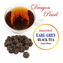 EARL GREY „DRAGON PEARL” Ekskluzīva Ķīnas Melnā (Ķīnā Sarkanā) lielo lapu tēja sarullēta lielās pērles bumbiņās, kuru sastāvā ir daudz zeltainas nokrāsas tipšu kopā ar pirmajām divām vai vienu lapiņu. Tipsis ir zara pumpurs asna veidā. Tā ir vērtīgākā un dārgākā tējas koka "Camellia Sinensis" sastāvdaļa. Tikai tipšos ir sastopama aminoskābe L-teanīns, kas palīdz saglabāt normālu garīgo darbību. Tējas, kuru sastāvā ir tipši, satur vairāk antioksidantus un mazāk kofeīna. Tējai piemīt sarkanbrūna nokrāsa ar patīkamu, piesātinātu aromātu un nektāra garšas niansēm, smalkām ziedu notīm pēcgaršā.