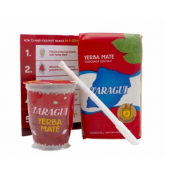 250 g tradicionālās Taragui yerba mate + plastmasas kauss + plastmasas bombilla