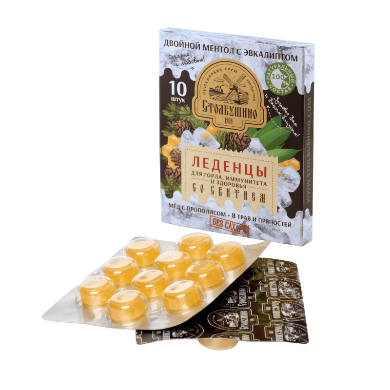 Sastāvdaļas: izomalts (saldinātājs), cietes melase, ciedra sbitēns ar propolisu (dabīgais medus, dzeramais ūdens, ciedra čaumalas, egles zari, ugunskura zāle, asinszāle, timiāns, kalmju sakne, ingvera sakne, lakricas sakne, citronu sula, propoliss) , propoliss, citronskābe (skābuma regulators), askorbīnskābe (C vitamīns), mentols, eikalipta ekstrakts