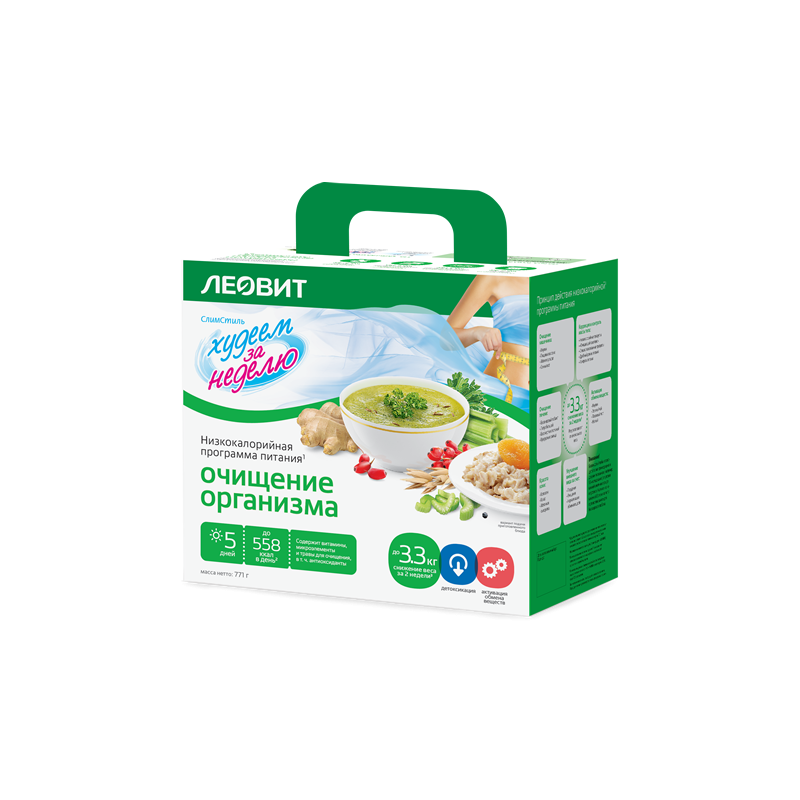Programma "Zaudēt svaru nedēļā" ir visaptverošs risinājums organisma attīrīšanai un ķermeņa svara kontrolei. Sastāvā ir dažādi uztura maisījumi, tostarp zupas, graudaugi un dzērieni, kas veicina detoksikāciju un uzlabo izvadsistēmas darbību. Programma ir piemērota cilvēkiem, kuri vēlas zaudēt svaru un uzlabot vispārējo labsajūtu. Sk.video