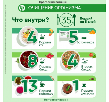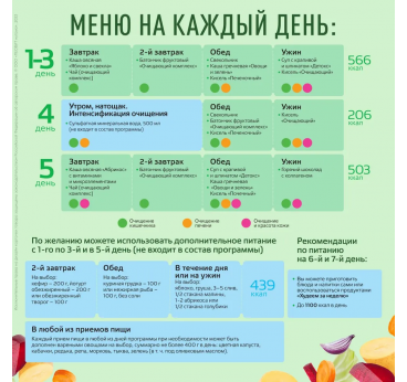 Uztura programmas "Organisma attīrīšana" sastāvs