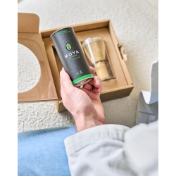 Jūs varat sagatavot savu Moya Matcha To Go! neticami ātri Moya Glass Shaker vai parastā pudelē: vienkārši pievienojiet matcha sulai, ūdenim vai pienam un enerģiski kratiet to 5 sekundes.