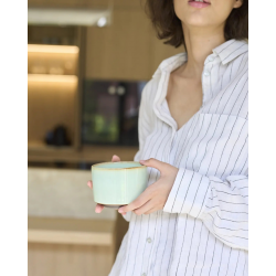 Umi Matcha Bowl Matchawan Umi ir roku darbs uz podnieka ripas no pelēka māla ar smalku šamota piedevu un glazūru, kas izgatavota pēc gadsimtiem senām japāņu tradīcijām. Tas tika izveidots ierobežotā sērijā KOOE for MOYA, ko izgatavoja Krakovas keramikas studija KOOE, kuras izstrādājumiem ir raksturīgas ne tikai skaistas formas, bet arī izcila izturība, pateicoties apdedzināšanai augstā temperatūrā. Katrs šīs sērijas matchawan ir unikāls rokdarbs, tāpēc tā izskats un izmērs var nedaudz atšķirties no fotoattēlā redzamā.
