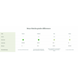Augstas kvalitātes organiskā matcha ar sabalansētu, bagātīgu rūgteni saldu garšu, krēmīgu tekstūru un malahīta zaļo krāsu. Tā bagātīgā garša padara to ideāli piemērotu dzeršanai vienu pašu, kā arī latte, smūtijos un limonādēs. Moya Matcha Traditional iegūst 1. un 2. ražā no tējas augiem, kas ir īpaši noēnoti no tiešiem saules stariem. Šis process nodrošina augstāku hlorofila un L-teanīna saturu un bagātīgāku, zaļāku krāsu. Pēc tam svaigas lapas savāc, žāvē un sasmalcina pulverī.