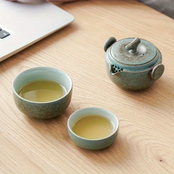 Jauna, roku darbs tējas tējkanna un 2 tasīšu komplekts tējas pagatavošanai, lieliski līdzņemšanai