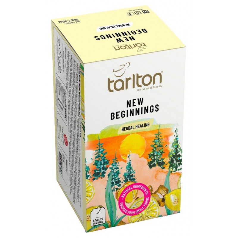 Iepazīstinām ar mūsu New Beginnings zāļu tēju — uzmundrinošu zāļu maisījumu, kas pilns ar pikantu citrusaugļu un sildošu, atsvaidzinošu garšu. Zāļu tēja, kas pagatavota ar ingveru, citrona miziņu, citronzāli un citiem rūpīgi atlasītiem augiem, atmodina sajūtas un iedvesmo svaigam dienas sākumam. Iepakota tējas maisiņos bez skavām un papīra aploksnēs, tā nodrošina svaigumu un ērtības.