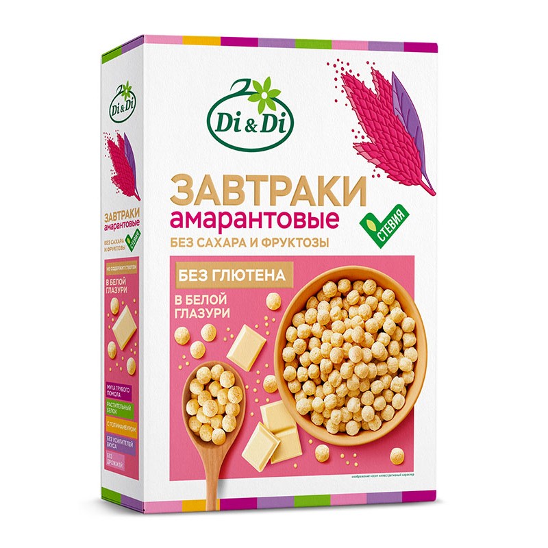 Gardas un veselīgas amaranta brokastis BEZ GLUTĒNA ar balto šokolādi ir iecienītas gan bērnu, gan pieaugušo vidū! Katra bumbiņa ir pārklāta ar plānu glazūras kārtu. Pateicoties unikālajai kukurūzas, rīsu un amaranta miltu maisījuma receptei ar topinambūras piedevu, brokastis ir šķiedrvielu, vitamīnu, minerālvielu un mikroelementu avots. Cukura nav, un kā saldinātājs tiek izmantots stēvijas ekstrakts. Gatavās brokastis var ēst ar pienu vai jogurtu vai kā atsevišķu ēdienu.