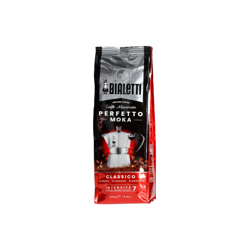 Bialetti Perfetto Moka Classico - итальянский молотый кофе темной обжарки. Насыщенный, с подчеркнутыми нотами сухофруктов и цветов. Из-за размера помола рекомендуется для приготовления мока. Правильная крупность приводит к хорошему течению воды, желаемой экстракции и, наконец, ожидаемому вкусу.