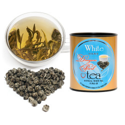 Китайский белый чай в ручную скрученный в маленькие, размером с жемчужину шарики, в состав которого входит типс и первые два листочка. Типс это первый листочек ветки, бутон в виде ростка - листовая почка. Это самая ценная и дорогая часть чайного дерева Camellia Sinensis. Только типси содержат аминокислоту L-теанин, которая помогает поддерживать нормальную умственную функцию. Чаи, содержащие типсов, содержат больше антиоксидантов и меньше кофеина. Белый чай - самый нежный и ценный среди чаев чайного дерева Camellia Sinensis. У Белого чая «Жемчужина Дракона» присутствует утонченный аромат, наполненный нотками цветов и фруктов, изысканный нежно-сладкий вкус.