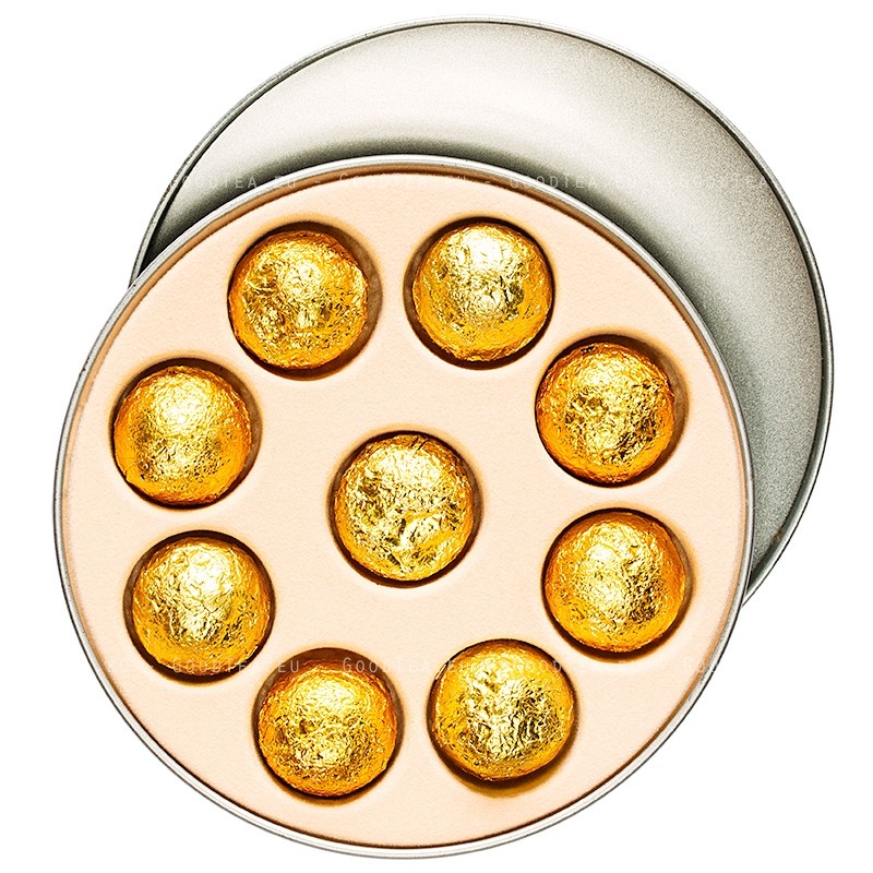 Мелколистный пуэр, собранный в 2011 году, спрессованный в небольшие гнезда Туо в привлекательном жестяном футляре, станет идеальным подарком даже для тех, кто не является ярым любителем пуэра. В этом чае не преобладает землистый характер, он скорее слаще и нежнее. Бутон китайской розы, прижатый к гнезду, является традиционным аккомпанементом, а с точки зрения здоровья он усиливает действие чая Пу Эр, например, благодаря его способности лечить боли в горле, простуду, снижать температуру, бороться с инфекциями и т. д. Гнезда, обернутые золотом. на прочной основе внутри металлического диска и традиционной бумажной коробки находится продукция бренда Lock Cha из Гонконга, что само по себе является гарантией качества.