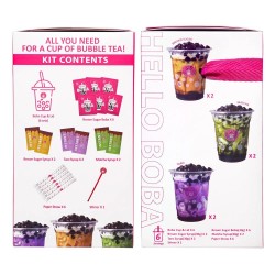 В каждой коробке есть все необходимое, включая 6 комплектов одноразовых стаканчиков, пакеты боба, мраморные сиропы, бумажные трубочки размером с боба и мешалку! Используйте новый мраморный сироп, чтобы покрыть кружку глазурью, прежде чем добавлять кубики льда, боба и молоко по вашему выбору. В коробке есть вкус матча, таро и коричневого сахара.