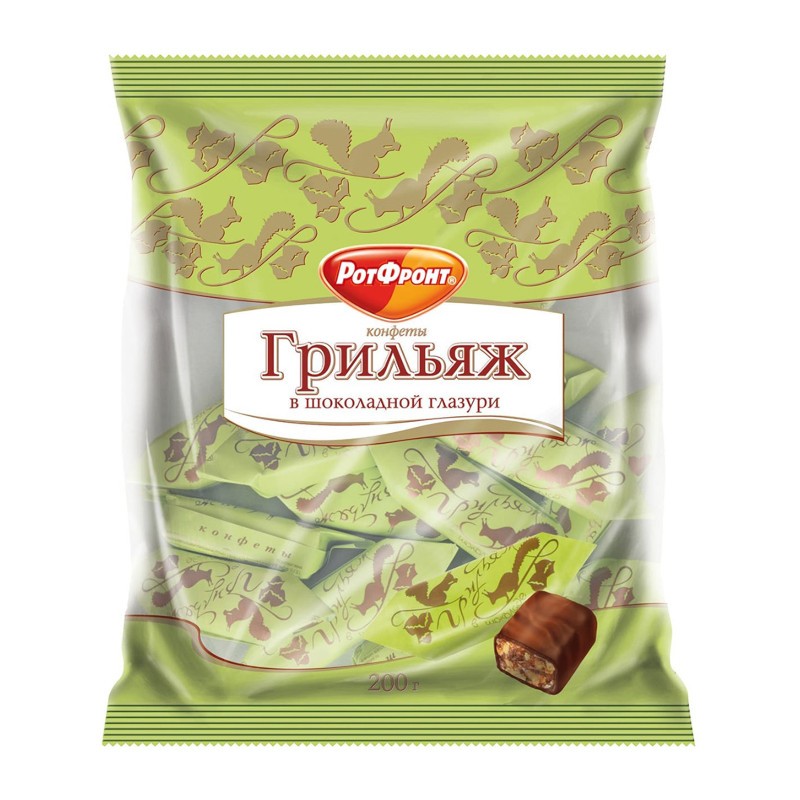 Хрустящее карамельно-ореховое лакомство. Классический твердый грильяж из дробленого фундука, ароматная сахарная карамель, легкие нотки ванили и нежная шоколадная глазурь. Особенно прекрасен, если не торопиться и дать конфете медленно, слой за слоем, таять во рту, а когда карамель станет мягкой, наслаждаться хрустом орехов в окружении сахарно-ванильной сладости.