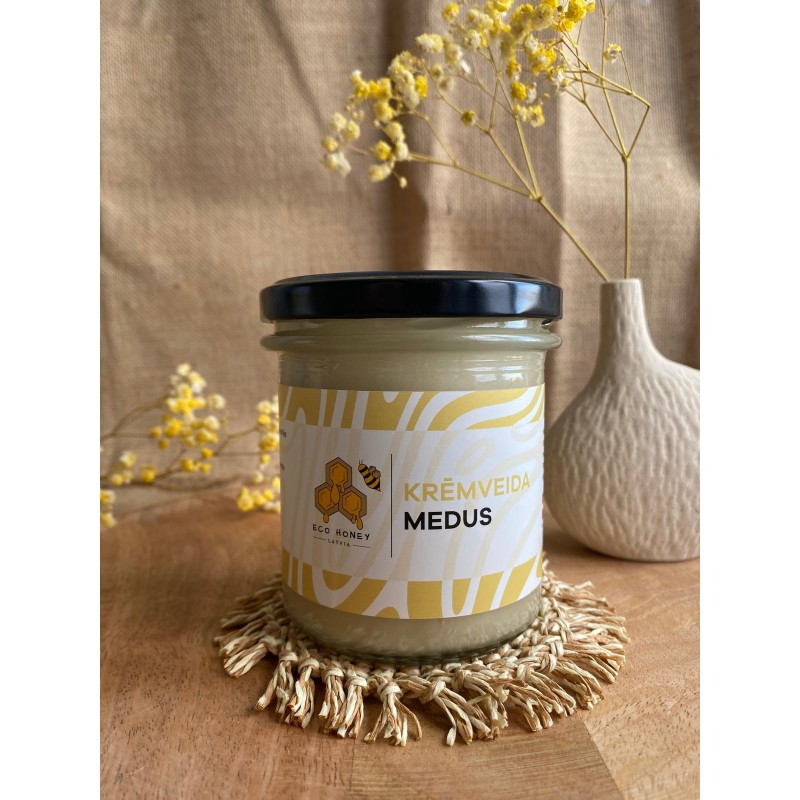 Кремовый мед — специально обработанный путем тщательного перемешивания (сбивания) для обеспечения гладкой и кремообразной текстуры. Его собирают весной и в начале лета с органических лугов, яблоневых садов, сливовых деревьев, одуванчиков и других цветов. Мед легко наносится и сохраняет все свои природные свойства и вкус.