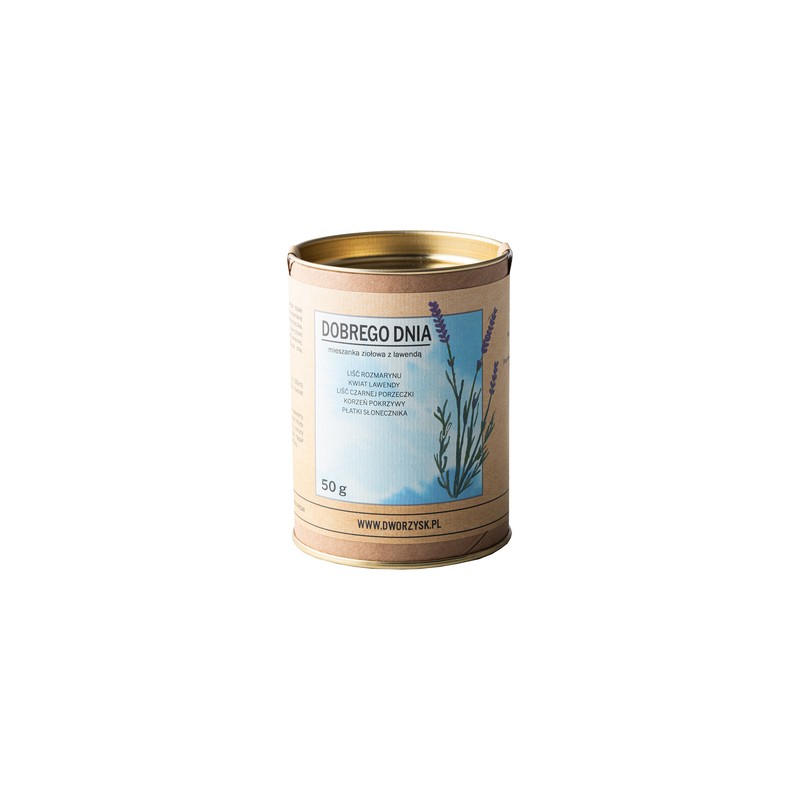 Dworzysk Dobrego Dnia — травяной настой для хорошего начала дня. Согласно народной медицине, розмарин, лаванда, черная смородина, крапива и лепестки подсолнечника способствуют пищеварению, оказывают расслабляющее и вяжущее действие. Этот настой способствует концентрации, укрепляет нервную систему и стимулирует кровеносную систему. Поддерживает организм в состояниях напряжения и стресса.