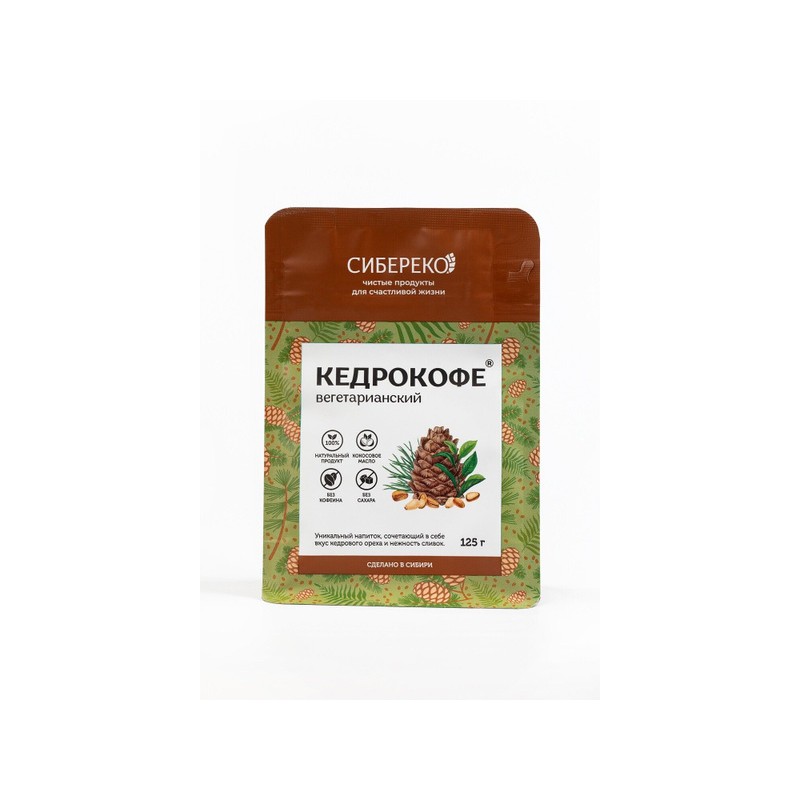 Кедрокофе Вегетарианский - нежный Сибирский горячий напиток, созданный с заботой о природе! Сладость кедрового ореха и мягкий молочный вкус подарят Вам удовольствие и пробудят энергию для новых свершений!