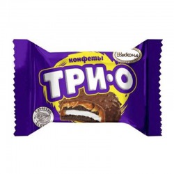 Состав: Оригинальные глазированные конфеты с использованием темного хрустящего печенья с нежной кремовой начинкой, покрытые карамелью , обсыпанные крупкой арахиса.