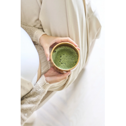 Чаша Yugen – это сосуд, отличающийся уникальным внешним видом. Её углубления и цвет напоминают о таинственной стороне природы. Низкие стенки и широкое дно чаши позволяют легко смешивать матча с водой, быстро создавая пену на поверхности. Это можно сделать с помощью бамбукового венчика (часэн) или вспенивателя молока. Матчаван Yugen был разработан и изготовлен в украинской керамической мастерской. Югэн – японское прилагательное, описывающее глубокое чувство красоты вселенной, которое трудно описать словами.