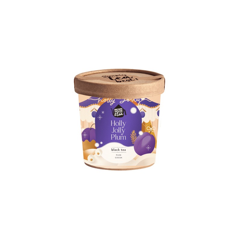 Brown House & Tea Holly Jolly Plum — идеальный праздничный подарок для любителей традиционного чёрного чая и тех, кто ценит уникальные вкусовые сочетания. Сладкий вкус сливы, какао и корицы понравится и юным любителям чая. Он станет отличным выбором для уютных киновечеров, семейных посиделок или согрева после долгих прогулок.